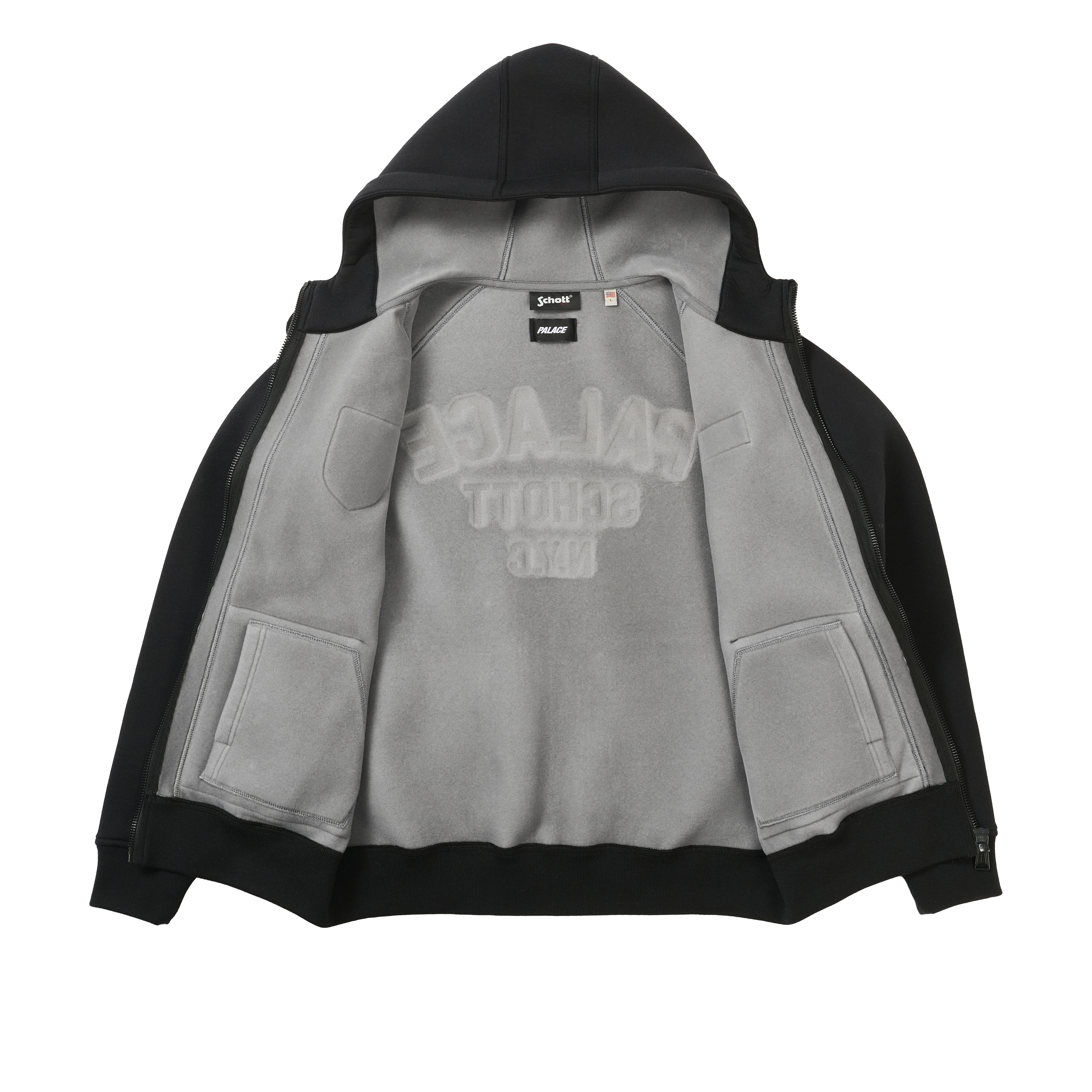 PALACE SCHOTT BONDED FLEECE HOOD BLACK